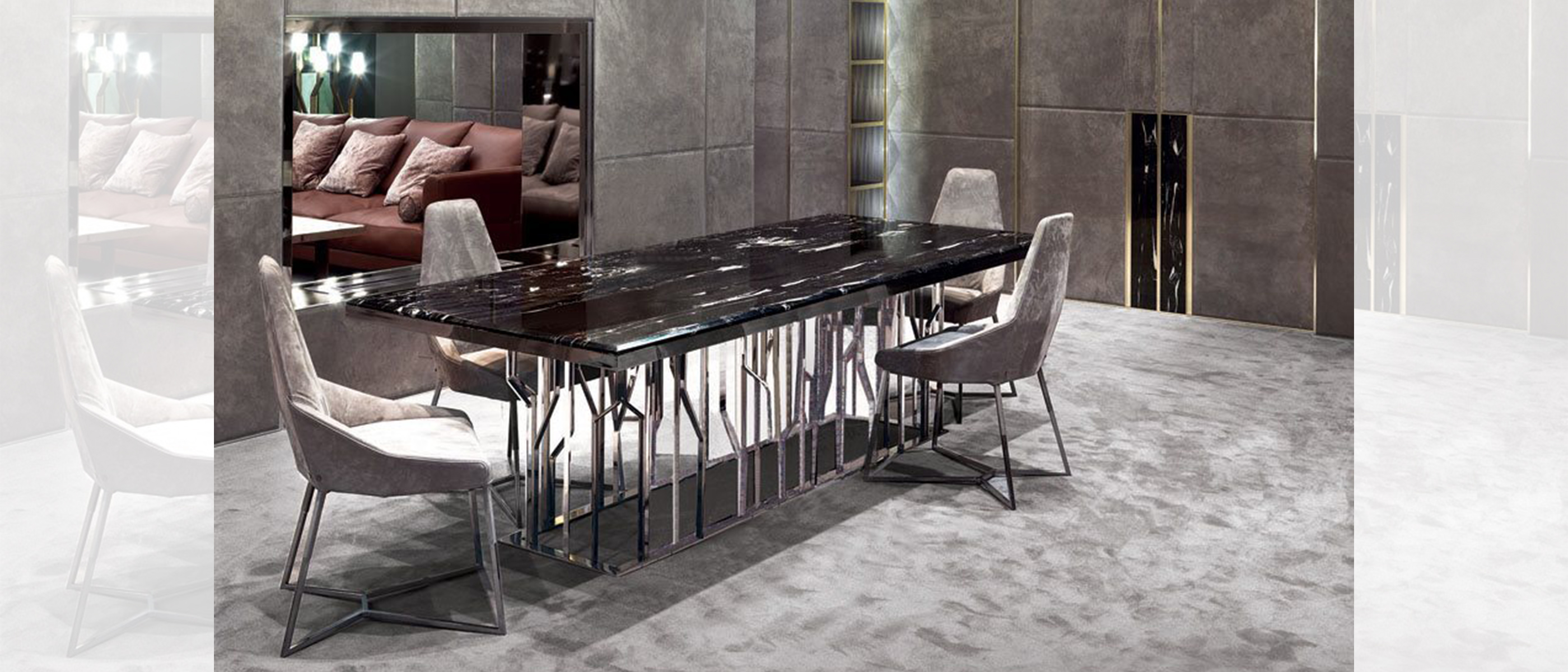 The table designed by Alessandro La Spada is a beautiful table with metal structure available in 10 finishes and marble or mirror tabletop available in multiple finishes. Also available in 2 sizes.