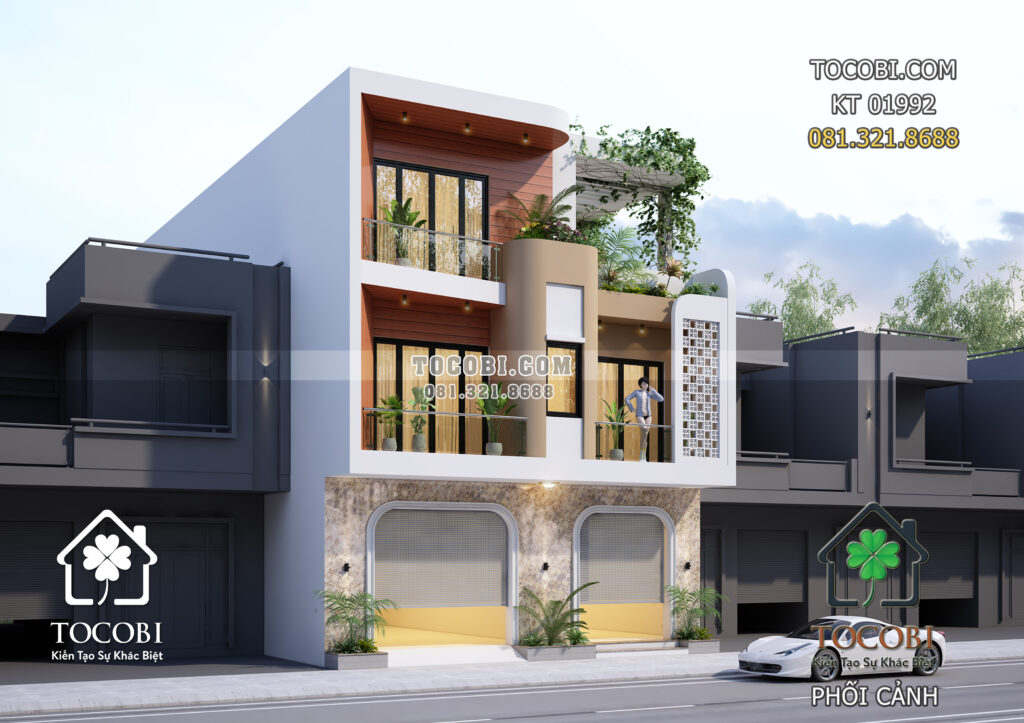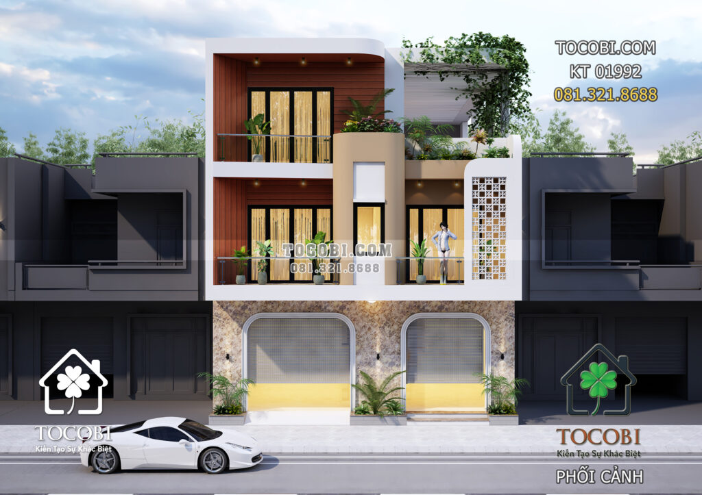 • Mẫu nhà đẹp 3 tầng 8,5m KT 01992 được thiết kế cho anh Hòa ở Thái Bình. Với sự phát triển mạnh mẽ của nền công nghệ 4.0 phong cách hiện đại đang là một trong những cách dẫn đầu trong sự yêu thích của những người trẻ tuổi. Là một chủ đầu tư trẻ tuổi, năng động và yêu thích sự sáng tạo anh Hòa tìm đến Tocobi để chuyển tải mong muốn sở hữu một ngôi nhà hiện đại 3 tầng với bề mặt tiền 8.5m.