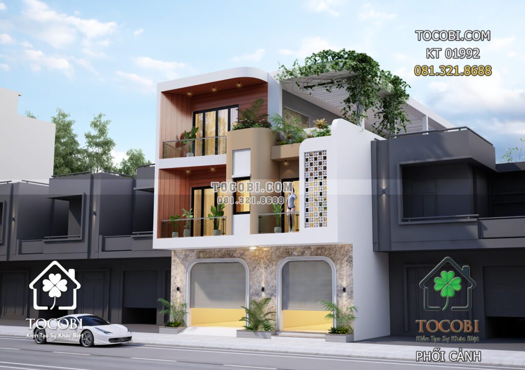 Đẹp xuất sắc với mẫu nhà phố 2 tầng 1 tum hiện đại KT-2004